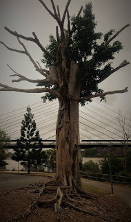 I don't exactly do awe walks but without ever having heard the term I've been practicing some elements of this over the past couple of years. Most days if I don't do any other form of exercise I go for a walk in the middle of the day. I don't pop headphones in my ears, or play with my phone except maybe to take the occasional photo. Instead, I try to pay attention to what's around me - to the trees growing by the side of the road or by the river, to the birds, to the lizards that run across my path. If I go over or along a watercourse, even a concrete drain, I stop and look over the edge to see if anything lives in the water.Many of the plants I walk past, perhaps most, have been deliberately planted by humans, but many of them haven't. Seeds blow on the wind, plants sent out tubers, birds and flying foxes spread them around. They can pop up in the most unlikely places. I'm always amazed by the tenacity of the shrubs and scrubby grasses that cling to the embankments beside railway tracks or to little pieces of dirt between slabs of concrete. And many species, like swallows, have adapted their lives to the presence of humans, building their nests in little niches of our homes and infrastructure - like the ones nesting under the freeway and on the underside of the footbridge I walked over this morning. They don't care that it's not a tree, as long as their chicks are safe and there's lots of flying insects to catch.